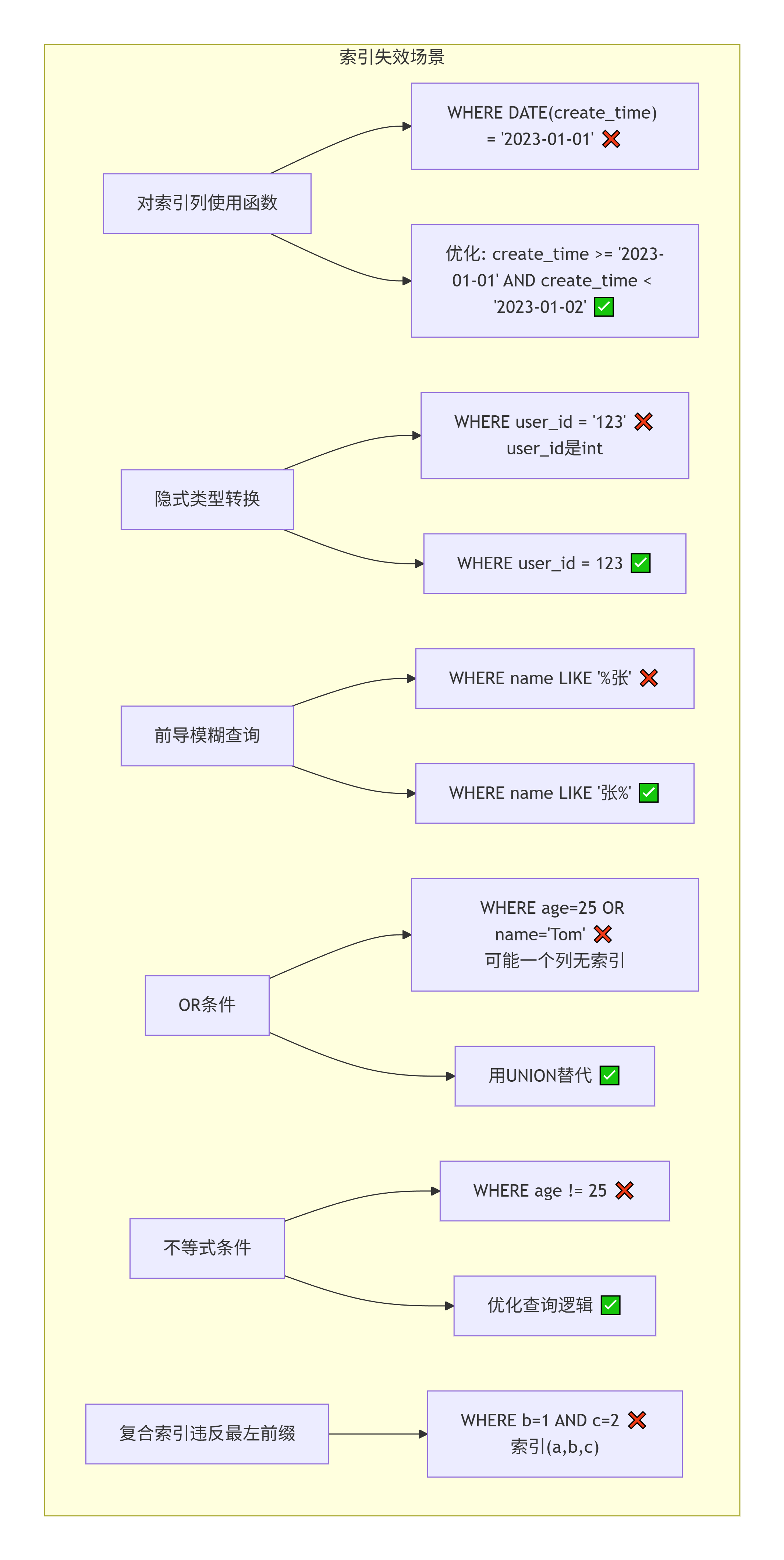 -- ❌ 无法使用索引