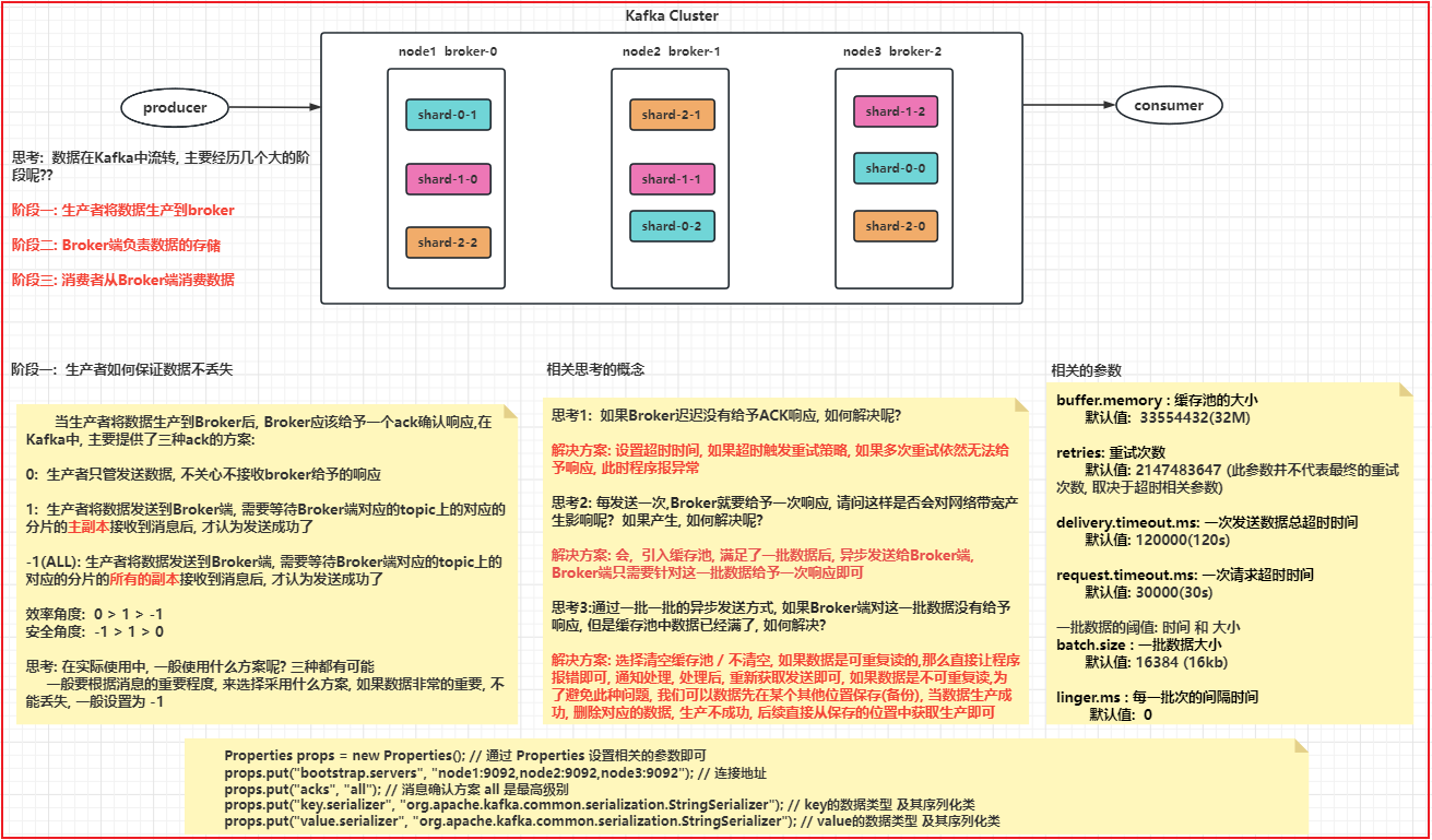 对于某些不太重要的数据,对数据的可靠性要求不是很高,能够容忍数据的少量丢失,所以没必要等 ISR中的follower全部接收成功。所以 Kafka为用户提供了三种可靠性级别,用户根据对可靠性和延迟的要求进行权衡,选择以下的配置。