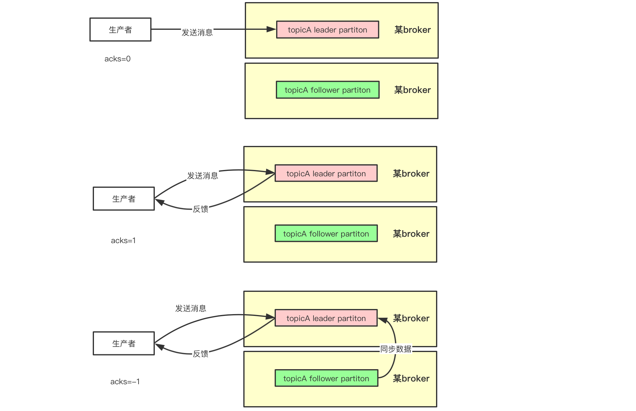 # 0:相当于异步的,不需要leader给予回复,producer立即返回,发送就是成功,