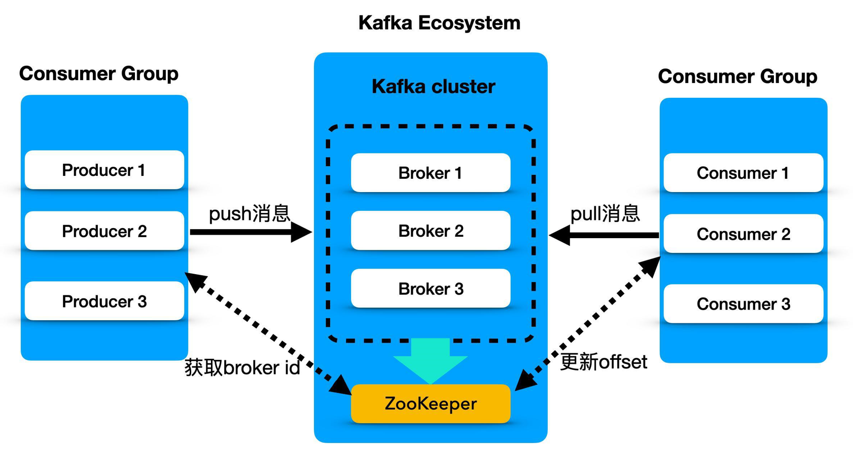broker: 一个独立的 Kafka 服务器就被称为 broker,broker 接收来自生产者的消息,为消息设置偏移量,并提交消息到磁盘保存。