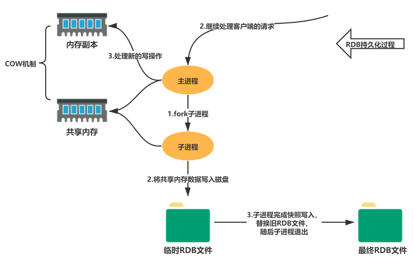 Redis 会单独创建(fock)一个子进程来进行持久化,会先将数据写入到一个临时文件中,待持久化过程都结束了,再用这个临时文件替换上次持久化好的文件。整个过程中,主进程是不进行任何 IO 操作的。这就确保了极高的性能。