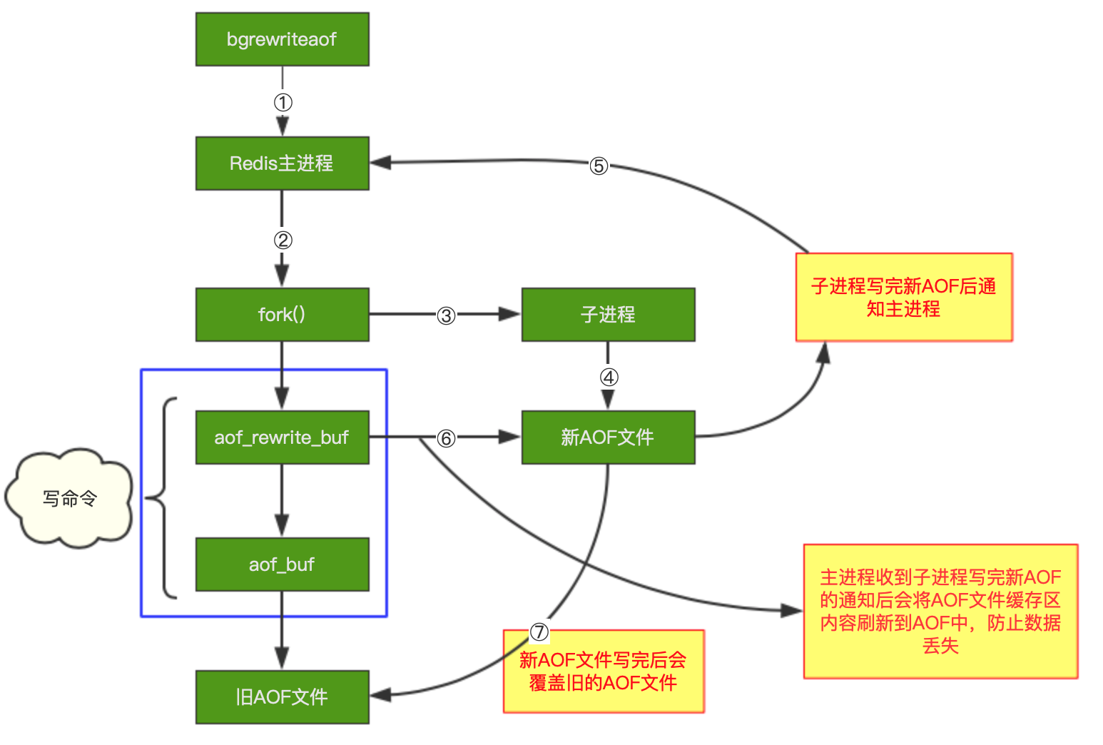 Append-only file:aof 比 rdb 有更好的持久化性,是由于在使用 aof 持久化方式时,redis 会将每一个收到的命令都通过 write 函数追加到文件中(默认是 appendonly.aof)。当 redis 重启是会通过重新执行文件中保存的写命令来在内存中重建整个数据库的内容。