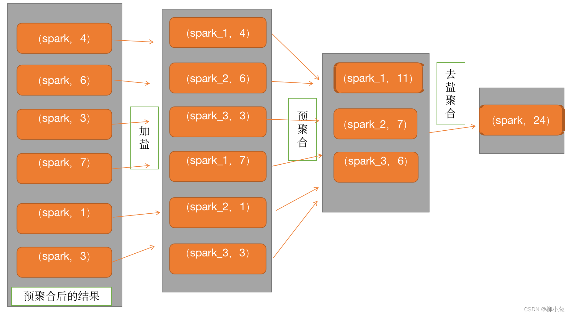 // 现在您可以对 saltedDF 执行操作,而不会出现数据倾斜问题加盐后计算过程如下: