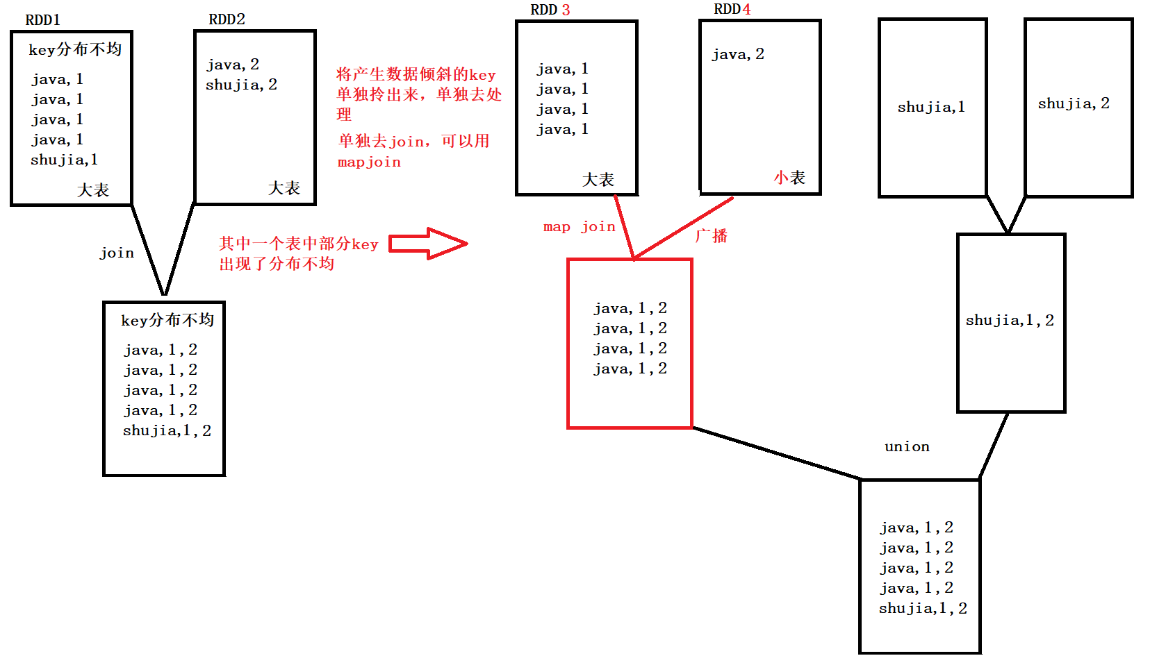 // 将倾斜key join后的结果与普通key join后的结果,uinon起来。