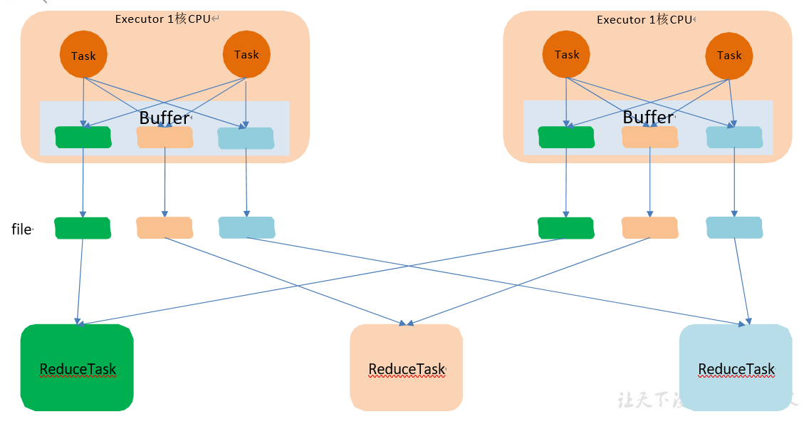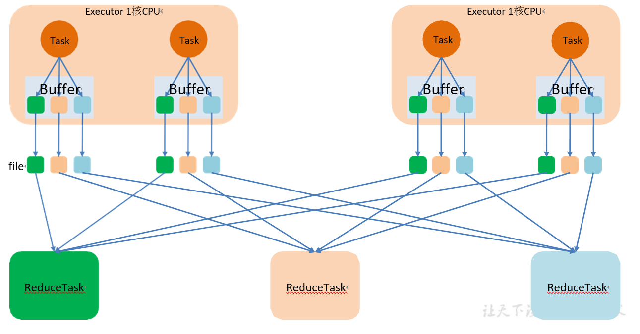 执行内存主要用来存储任务在执行 Shuffle 时占用的内存,Shuffle 是按照一定规则对RDD 数据重新分区的过程,我们来看 Shuffle 的Write 和Read 两阶段对执行内存的使用: