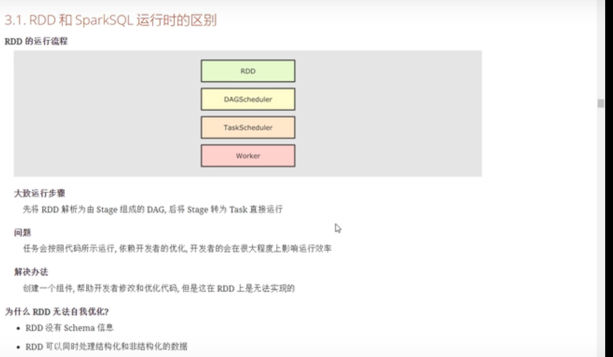 上图中左侧的RDD[Person]虽然以Person为类型参数,但Spark框架本身不了解Person类的内部结构。